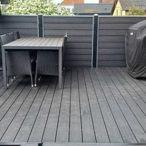 En terrasse i komposit er det ideelle valg for dig, der ønsker et smukt udtryk uden besværet med løbende vedligehold. Kompositbrædderne er fremstillet af en kombination af træfibre og plast, hvilket giver en stærk, stabil og slidstærk overflade, der tåler både det danske vejr og daglig brug.